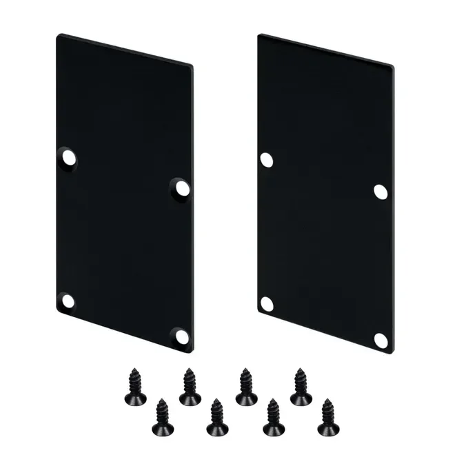 Глухие металлические заглушки (2 шт.) черного цвета для профиля LINE-S-3667. Придают законченный вид светильнику, а также защищают светодиодную ленту от внешних факторов (грязи, пыли и прочего).