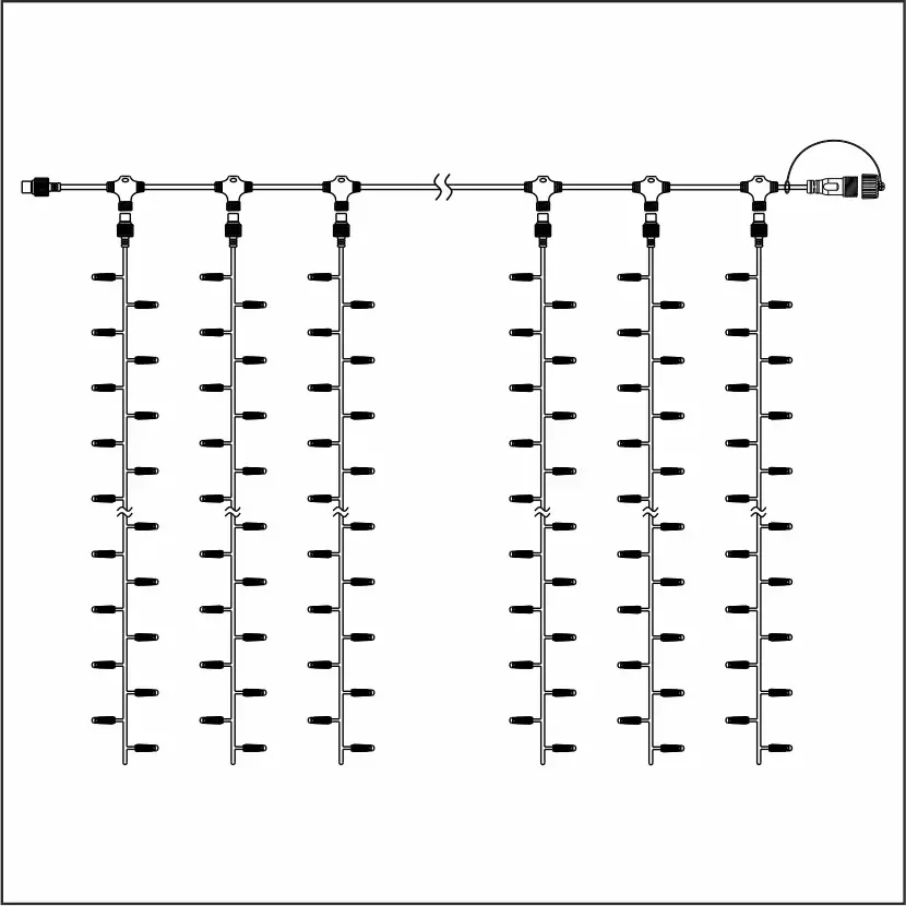 Занавес ALEDUS, 220 В, 2x6 м, черный провод, каучук (резина), теплый белый, с мерцанием