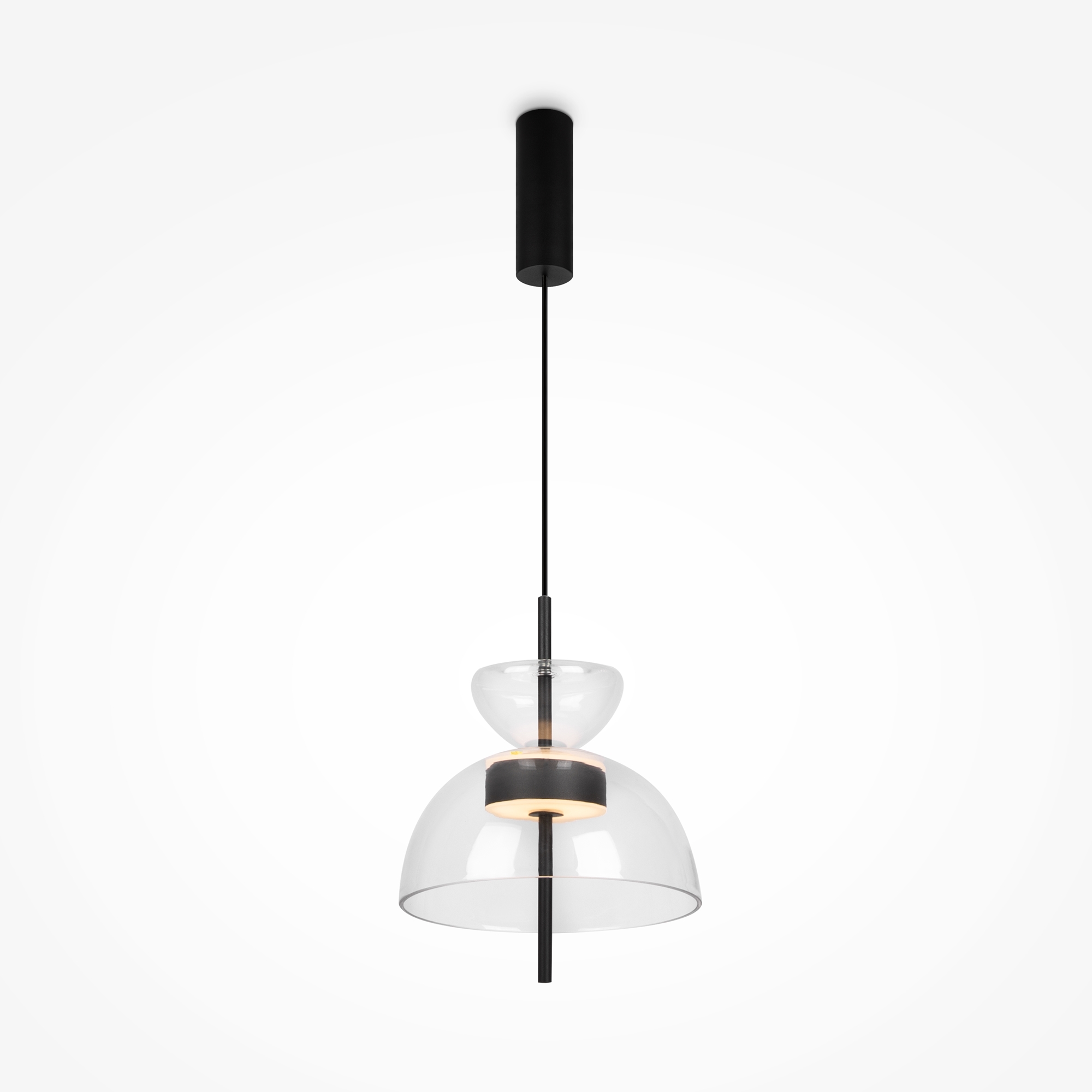 Материал арматуры - металл, цвет - черный. Уникальный дизайн минималистичных плафонов из стекла в трех цветах – дымчатый, прозрачный и серый. LED источник света, цветовая температура - 3000К. Регулируемая длина тросов.