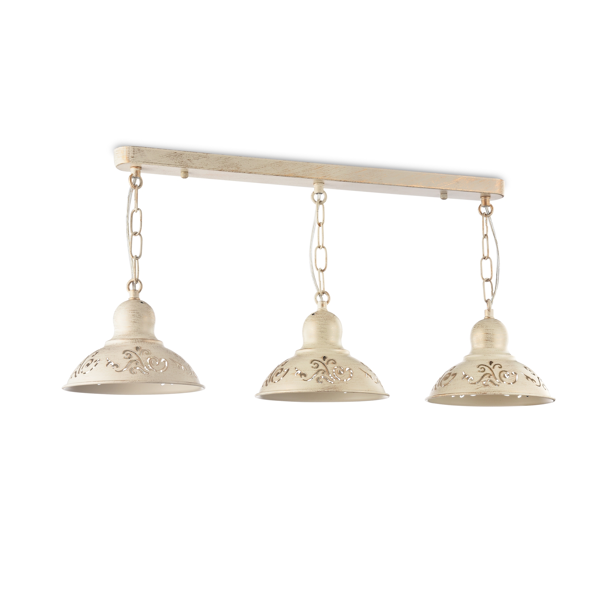 Светильники выполнены из металла цвета кремового золота. На плафонах светильников ажурно вырезаны узоры, прекрасно сочетающиеся с плавными изгибами арматуры. Благодаря большому ассортименту изделий серии Benoit легко выбрать светильник, подходящий как для просторных помещений, так и для небольших.