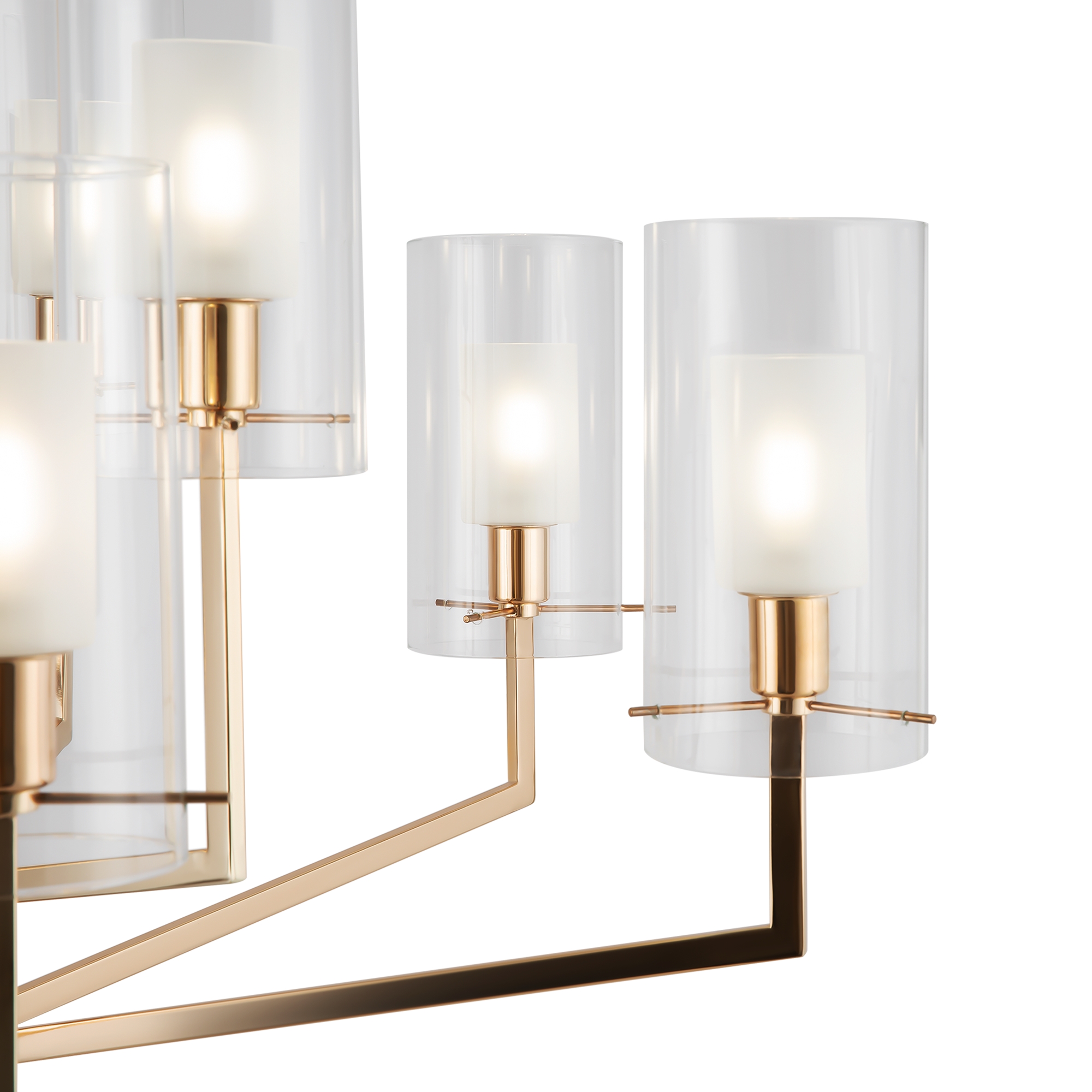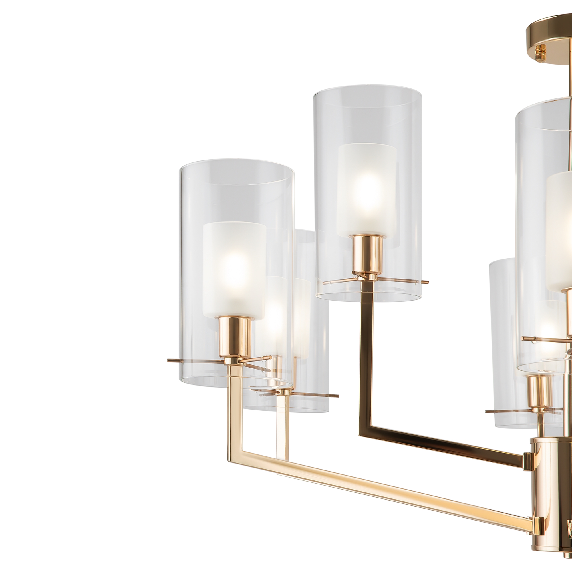 Изюминка серии Felicity – оригинальный дизайн, объединивший элегантную неоклассику и лаконичную геометрию. Визуально легкий образ создается благодаря воздушным плафонам. Они выполнены из двойного стекла – матового внутри и прозрачного снаружи. Такое решение обеспечивает мягкое, слегка рассеянное и комфортное для зрения освещение. Металлическая арматура окрашена в цвет французского золота – оттенок, актуальный как для классических, так и для современных интерьерных решений. Симметричное расположение геометричных рожков подчеркивает утонченность и строгость композиции. Элегантный дизайн актуален для современных, неоклассических и эклектичных интерьеров, позволяет расставить акценты, не перегружая обстановку. Серия включает люстры на 6, 8, 9 ламп и бра – можно организовать комплексные сценарии освещения в единой стилистике.