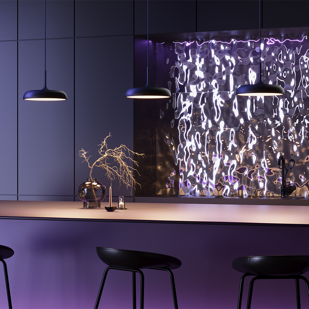 Арматура и плафон из металла,цвета - черный, белый, серый. Шагреневая поверхность - предотвращает следы от рук и пыли. Белый матовый рассеиватель из акрила хорошо пропускает свет, предотвращает слепящий эффект. Регулируемая длина провода - до 3 метров. LED-источник света. Цветовая температура 3000К.