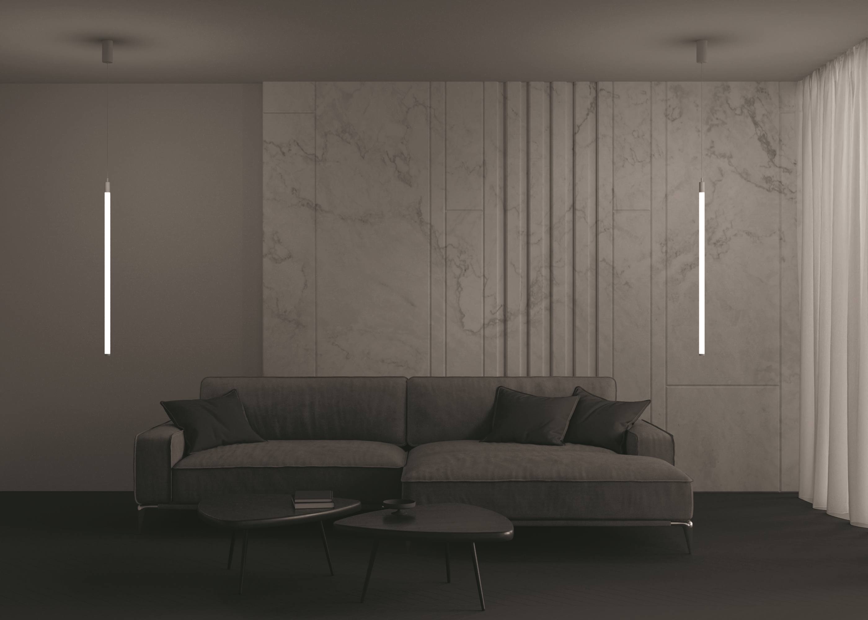 Едва уловимый взглядом светильник серии Ray буквально пронизывает пространство светом. Под корпусом из металла и акрила скрываются мощные SMD-светодиоды. Арматура выполнена из алюминия. Светильники окрашены в черный, белый и цвет матового золота. Тонкий провод добавляет конструкции легкости и регулируется по длине, позволяя расположить светильник на нужной высоте. Разная длина корпусов позволит составить индивидуальную композицию для украшения интерьера.