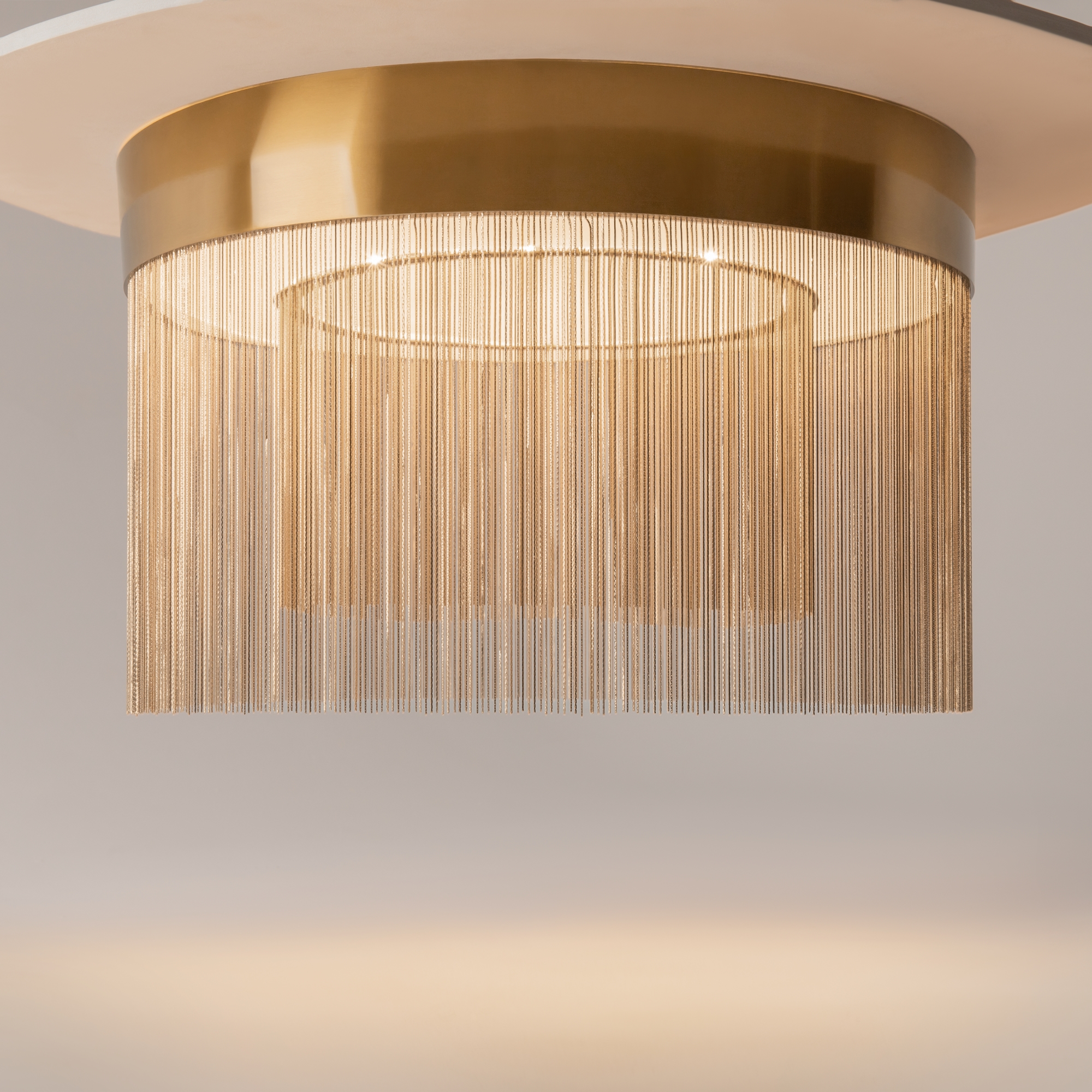 Металлическая арматура, цвет - золото. Мотивы ювелирного искусства в дизайне. Изящные цепочки на корпусе светильника создают переливы бликов. LED источник света. Цветовая температура - 3000К. Регулируемая высота подвесного светильника.