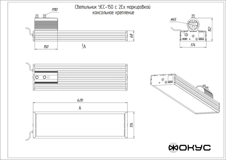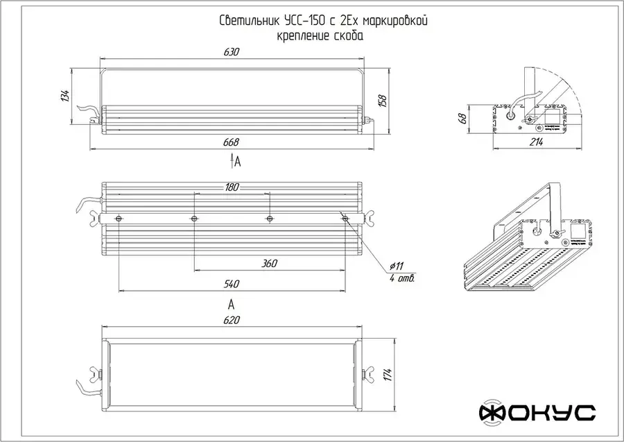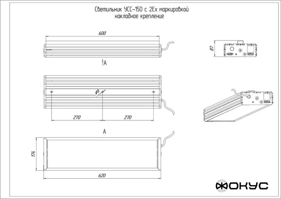 Светодиодный светильник взрывозащищенный УСС 150 Д 2Ex