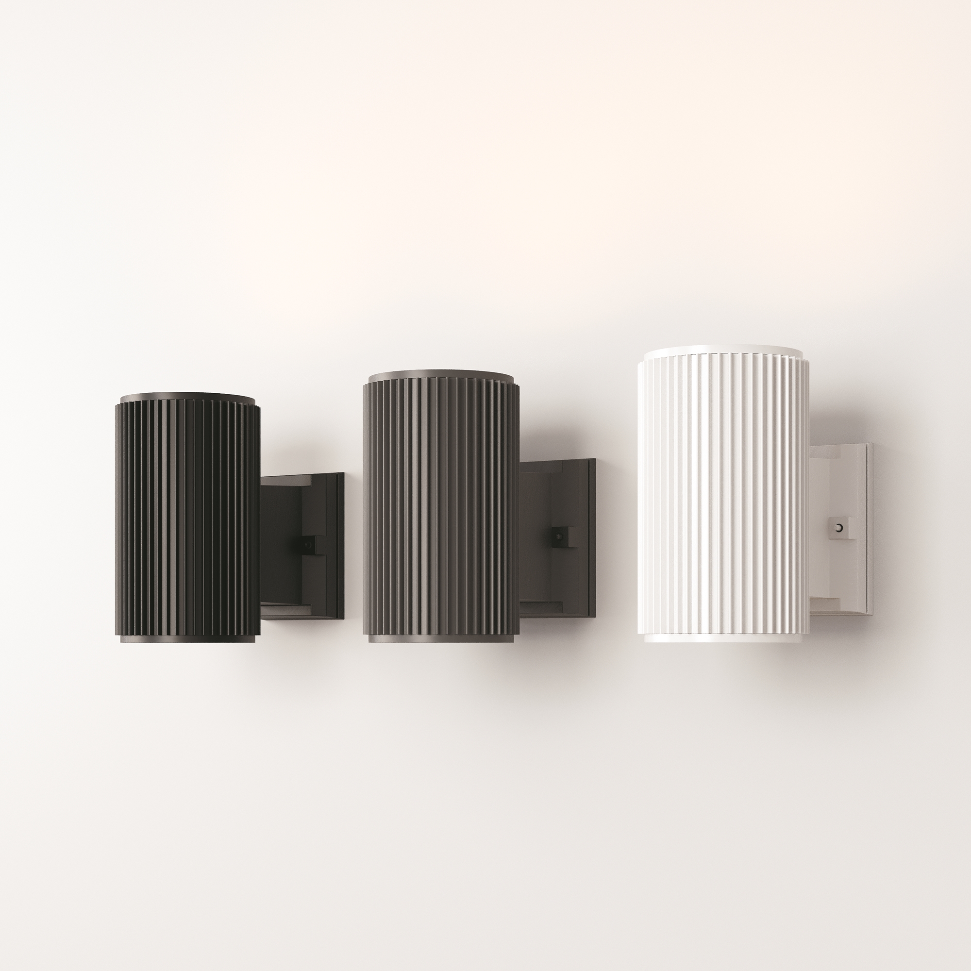 Металлический корпус, оттенки – черный, серый, белый. Рельефная фактура. Высокий уровень IP 54, защита от коррозии. Возможность настройки одно- и двунаправленной подсветки. Цоколь Е27.