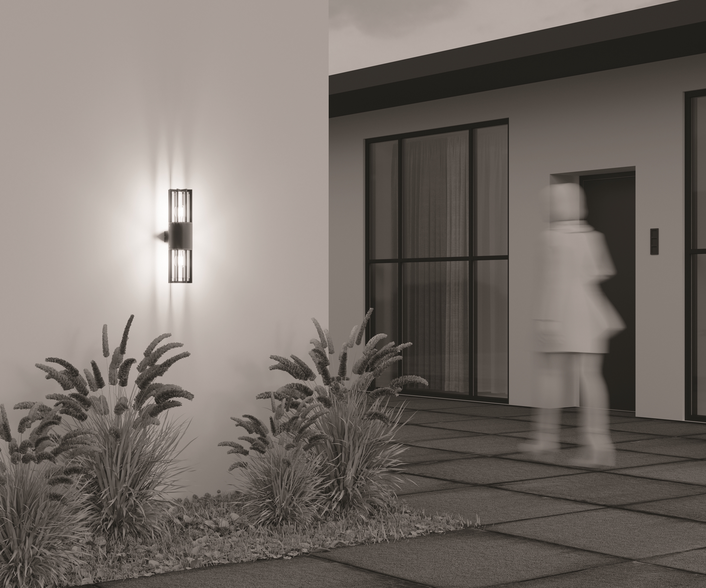Металлический корпус, цвет - графит. Плафон из прозрачного стекла защищен декоративной металлической решеткой. Источник света — лампа с цоколем Е27. Степень защиты от пыли и влаги - IP54.