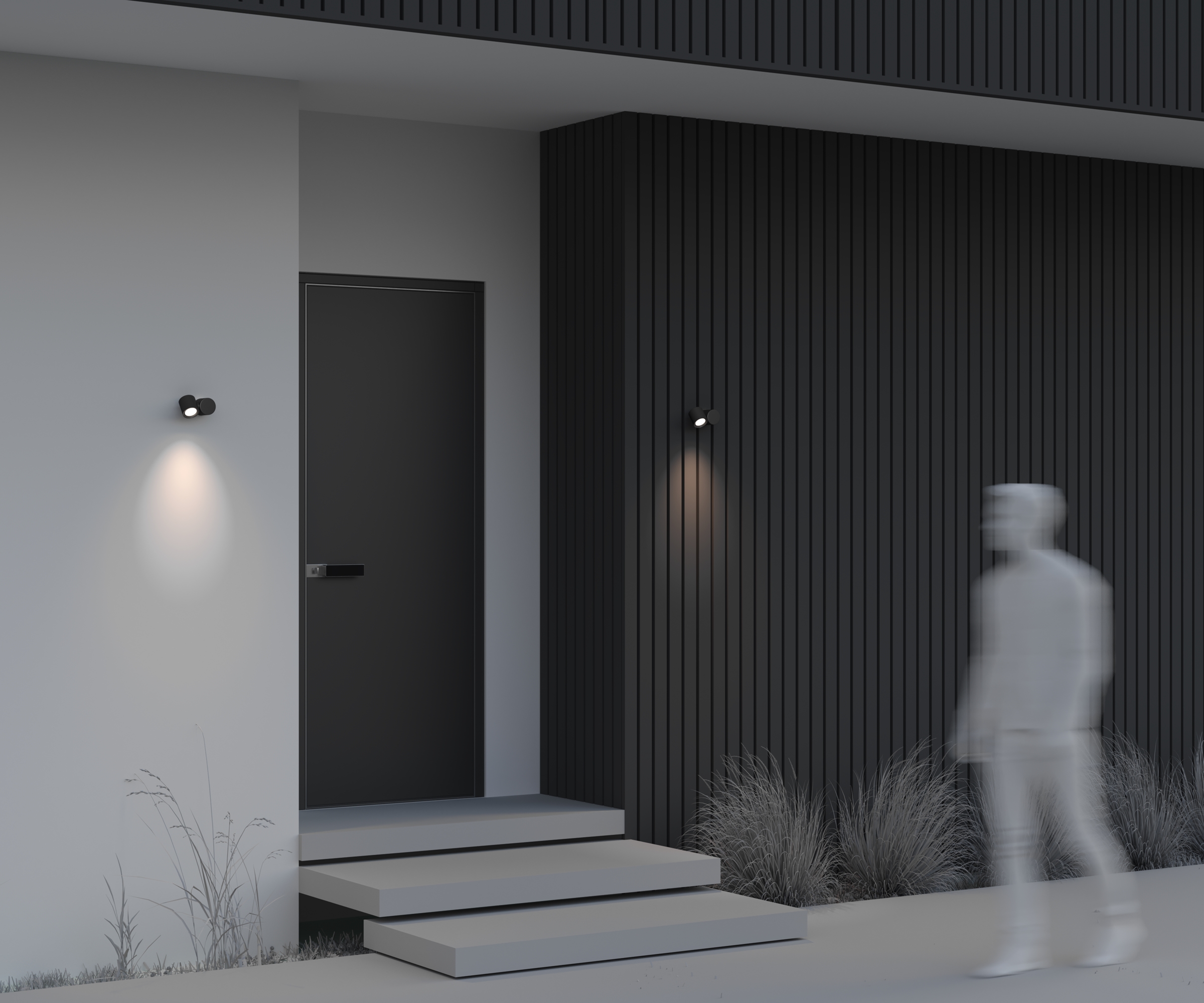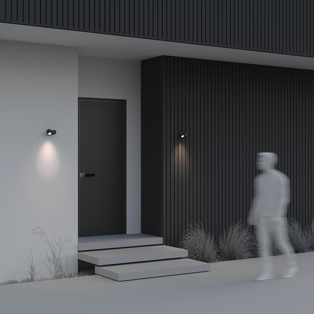 Корпус из алюминия, порошковое окрашивание в черный цвет. Плафоны вращаются – есть возможность менять направление света. Устойчивость к коррозии и перепадам температур. Высокий уровень IP 54.