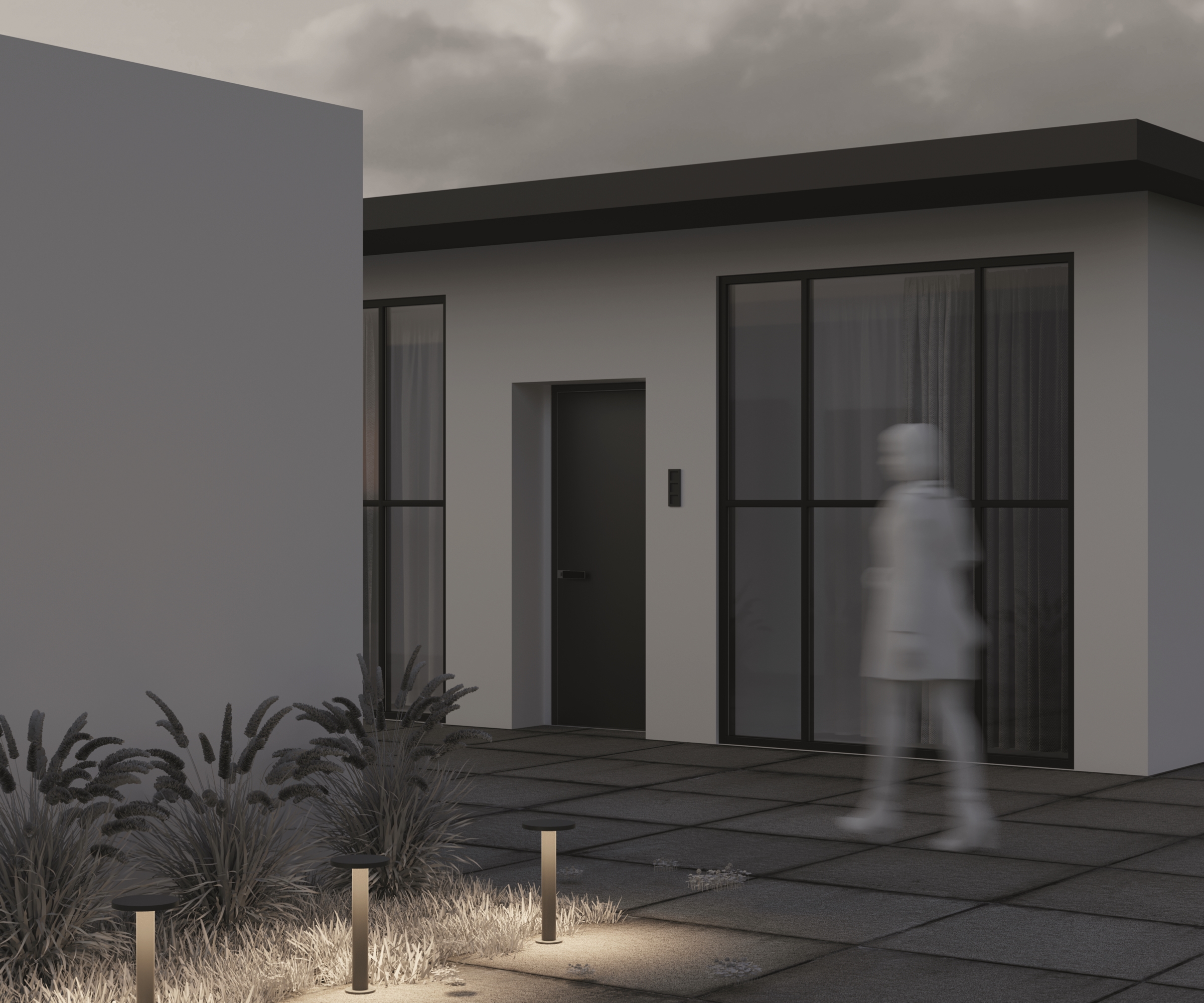 Материал корпуса – металл, цвет – графит. Высокий уровень защиты от пыли и влаги IP 65. Устойчивость к коррозии и перепадам температур. LED-источник света с нейтральной цветовой температурой (3000 К). Серия включает настенные и ландшафтные светильники.